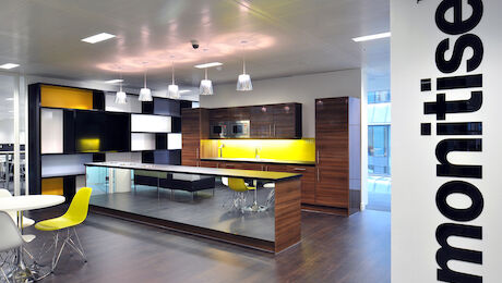 Monitise required a new property as they were embarking on a five-year plan to increase the headcount in their London Office from 300 to 500. As we had successfully delivered a large project for their Software Development operation in Cardiff, Monitise returned to us for assistance. They wanted us to ensure that their London investment was well designed to support and enhance their business as well as being confident that the project would run smoothly. The brief requested a ‘boutique hotel’ feel to the management floor including an Reception with Demonstration Area and Board Room. A matching contemporary feel was appiled to the remaining office areas, including Innovation Hubs and Teaming Areas. Each space was designed to optimise the business function whilst maintaining the ‘look and feel’ identified for the general scheme.