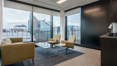 The new space is located on the 10th and 11th floors, and it was decided to locate a client-facing reception area and suite of meeting rooms on the 11th floor with views over the city. The 10th Floor and remaining 11th Floor areas were then allocated to general office functions including flexibly allocated workstations, meeting rooms, and touchdown and breakout space.