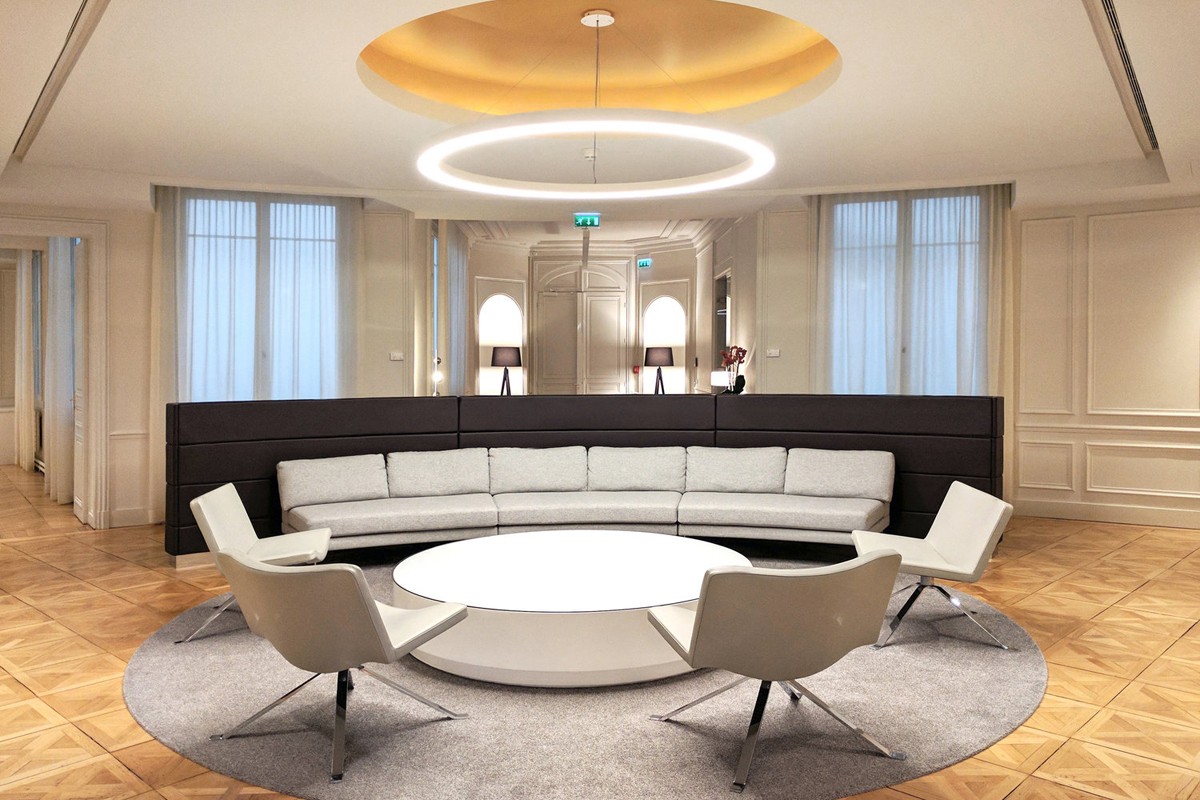 Following on from a successful London project with 3 Crowns, we were asked to project manage and provide design support for the relocation of the 3 Crowns Paris office. The chosen site was located on the Champs Elysées in a beautiful, traditionally styled Parisian building. The brief for the design was to create a 'contemporary French' space whilst displaying synergies with the New Fetter Lane office. The concept design was produced by an architect and delivered under a D&B contract by a UK contractor. We negotiated and project managed the delivery of the project while offering a watching brief on the design, including advising on colour co-ordination and soft furnishings. We also specified the furniture package and negotiated costs with the suppliers of the UK project.