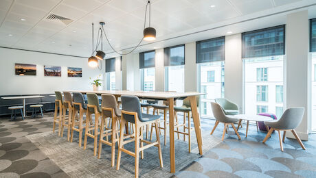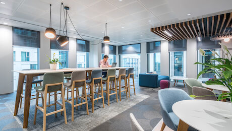 The specification was carefully managed to control the overall spend with more creativity and budget allocated for a central, client-facing breakout/touchdown space with collaboration and contemplation areas including new furniture and feature ceilings. Office areas made use of many existing items of furniture, topping up where necessary.