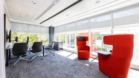 The proposed accommodation at 2 Pinetrees was on the 1st floor and provided 10,480 sqft of space, it had an existing and basic Cat B fitout that needed replacing. Our brief was to create a prestigious Head Quarters for DHL Global Forwarding UK and the new office needed to be both client-facing as well as support Finance, HR, Operations and Sales functions. The DHL project team supplied us with a clear design brief, and we began by providing a series of General Arrangement Plans to showcase how best to use the space available.
