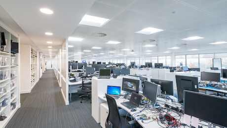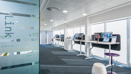 DisplayLink needed to relocate offices and in the process wanted to both plan for expansion and ensure staff retention. 140 Cambridge Science Park offered newly refurbished office space with clear options for subletting. We were employed as Design and Project Management Consultants to take the project from inception to completion. The brief for the office space was to maintain and reinforce strong inter-departmental links and support collaboration wherever possible. We added write-on finishes to both walls and storage, and even introduced additional walls to main circulation routes to maximise opportunities to collaborate. The overall cost of the project was carefully tracked to ensure best value at all times and a careful eye considered all elements that could be reused. A large and flexible client-facing meeting suite was included on the ground floor along with an expansive and relaxing breakout area with space for games as well as eating.