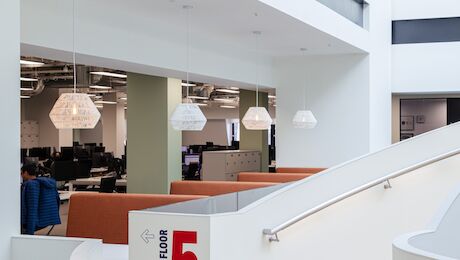 The previous tenant (Arcadia) had abandoned the building leaving everything in situ, so the first task was to decide if there was anything worth salvaging. After careful consideration and a full conditions survey, it was decided that most of the mechanical installation could be retained and that it was sensible to reuse the desks. The remainder of the existing fit-out and furniture was then stripped out. The works included a new lighting and electrics, a new raised access floor, new toilets and new finishes throughout, and these works were carried out within in a 56-week programme.
