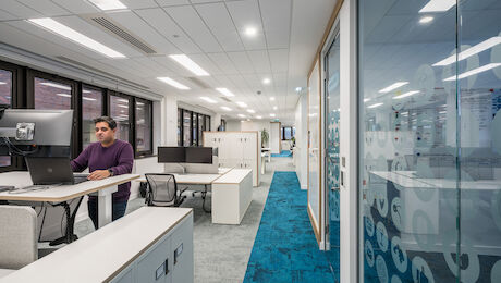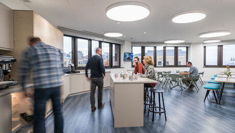 An upcoming lease break at City House in Cambridge provided Geant with the impetus to either relocate or to refurbish to support both business consolidation and growth. Initial assessments suggested a need to move to a larger facility but with careful planning and a move to a flexible allocation of desks this was dismissed as the existing central Cambridge location was preferable for transport reasons. Agile working had been successfully implemented in the central Amsterdam office so it was therefore decided to refurbish City House to a comparable standard with the Amsterdam office and implement flexible working where possible.
