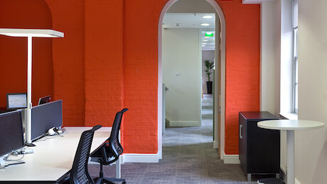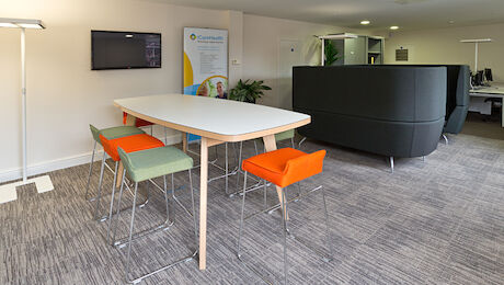 ICareHealth occupied very traditionally designed open plan offices within a Grade 2 Listed property and were unsure whether the constraints of the building were going to allow them to function as required. The brief was very radical, requesting 100% hot desking within a task-based environment. The new workspace has been zoned to support the various tasks performed by staff with quiet and noisy spaces on opposite sides of the building. Members of staff have ‘smart’ lockers in the breakout area where they can collect post, store personal items and charge/store laptops. Both formal and informal meeting spaces have been incorporated to support the design, and mobile technology was essential to the success of the scheme.