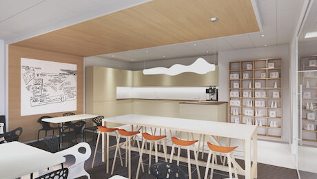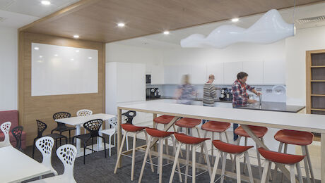A detailed report was provided and with average occupancy rates of 42% and peak rates at just 75% we suggested a layout supporting flexible working. The move from a traditional layout allowed the removal of superfluous workstations in favour of increased quantities of meeting spaces (both formal and informal) as well as quiet rooms and a spacious communal breakout area. It was agreed that desks would be provided for 80% of the headcount with lockers and hotboxes for all users.